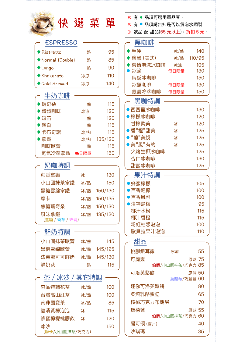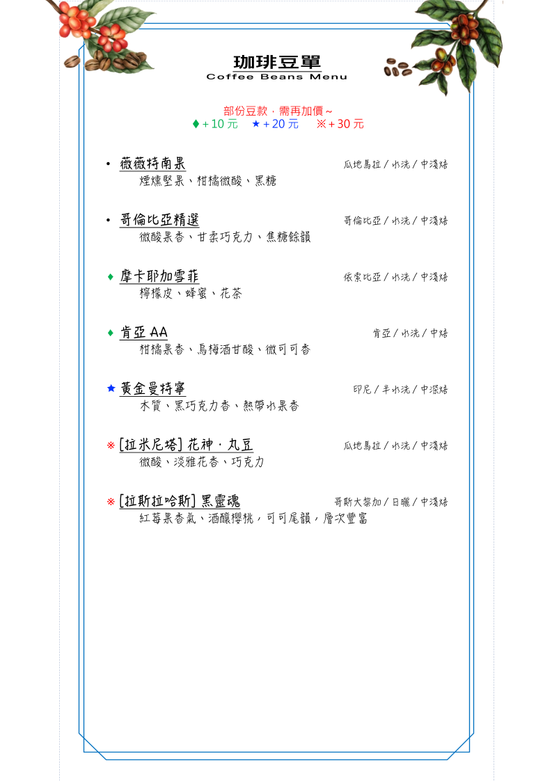 夯品珈琲/咖啡 Hunt Beans Roaster Menu